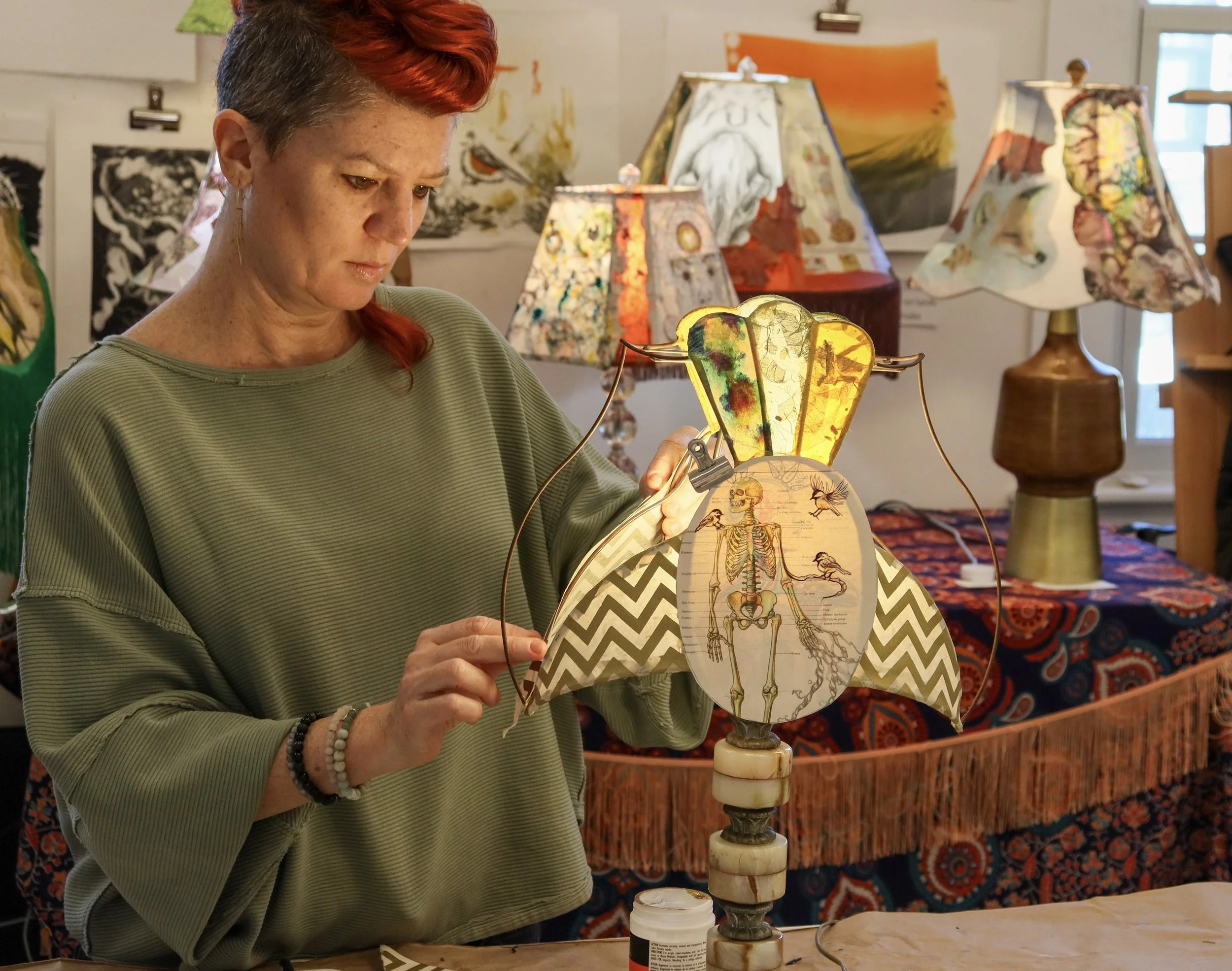 Celebrating the illuminated collage lampshades, drawings and prints of artist Justine Crosby.