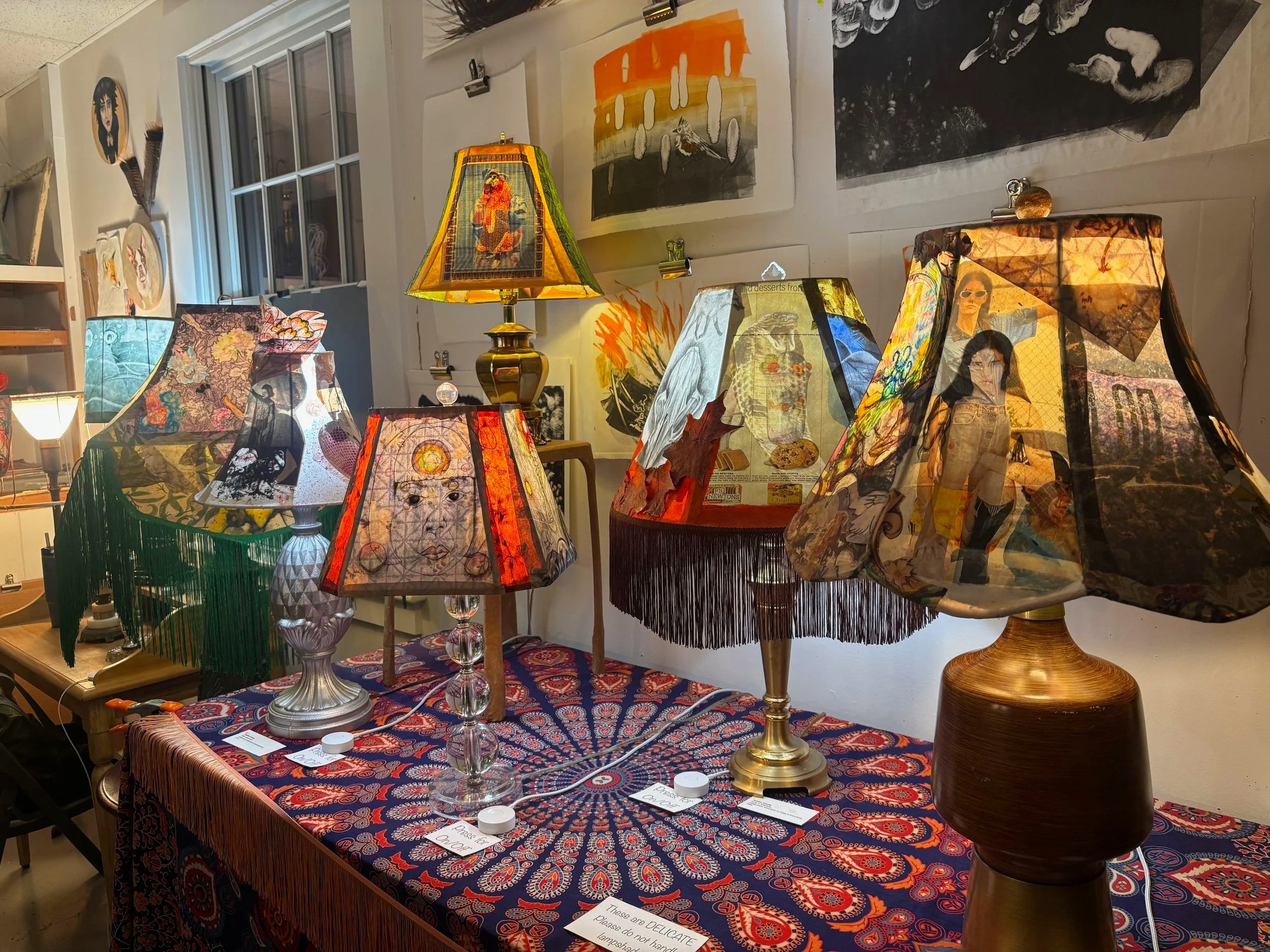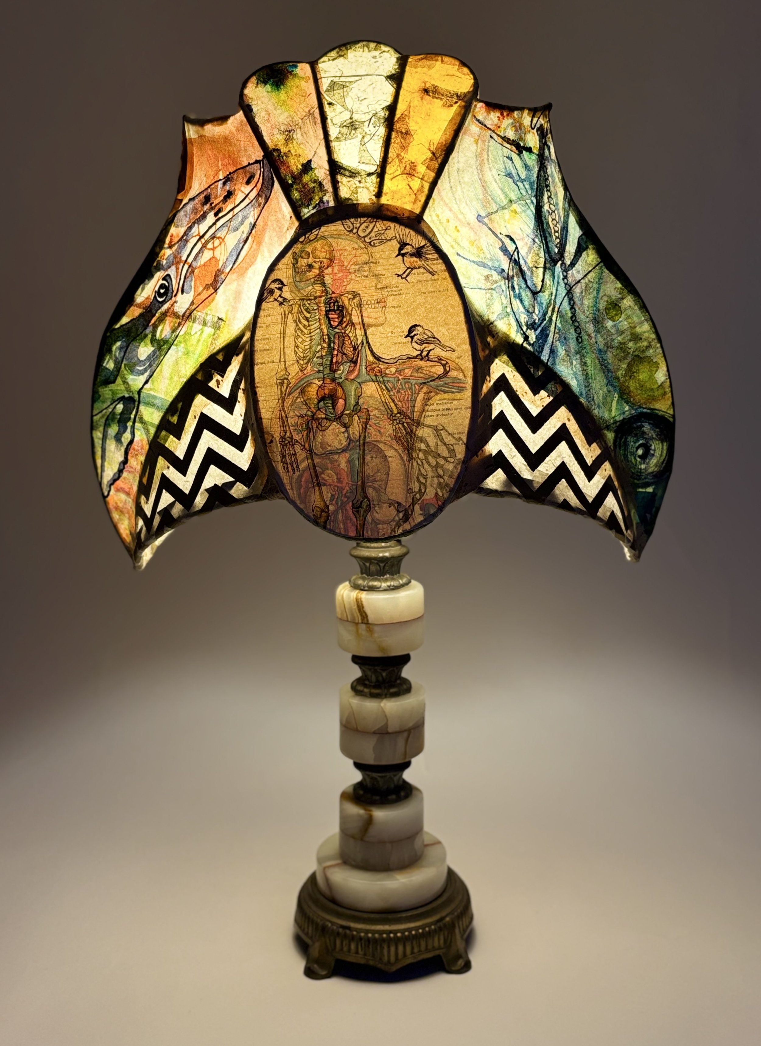 With a lifelong interest in drawing, Justine studied illustration at SCAD, then received their painting BFA at MassArt. Currently living in Truro, MA as a visual and performance artist, she reflects upon her connections between fine art, illustration, and dance. Justine’s current obsession is collaging paper mâché up-cycled lampshades. They use pages from old books and publications with handmade papers to illuminate their drawings, while interlocking history, feminism, queer culture, and nature.